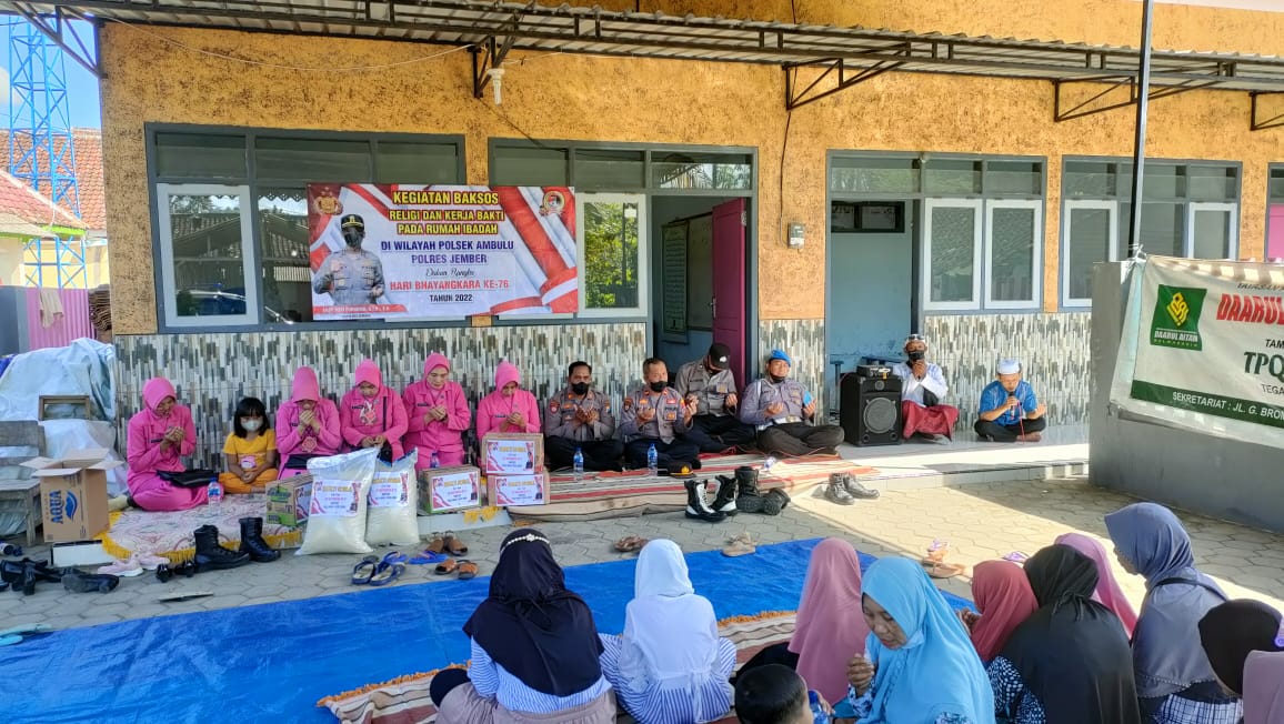 Polsek Ambulu Polres Jember menyalurkan bantuan kepada yayasan penyantun anak yatim dan fakir Miskin dalam rangka Hari Bhayangkara ke-76 tahun 2022.