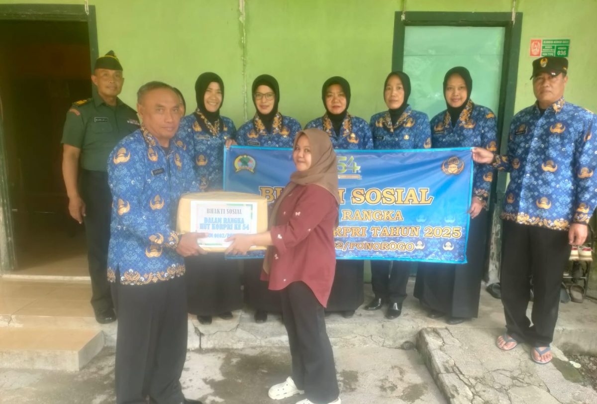 Dalam rangka memperingati Hari Ulang Tahun (HUT) ke 54 Korps Pegawai Republik Indonesia (Korpri) Tahun 2025, anggota PNS Kodim 0802/Ponorogo melaksanankan kegiatan pemberian bantuan sosial (bansos), Senin (01/12/2025).