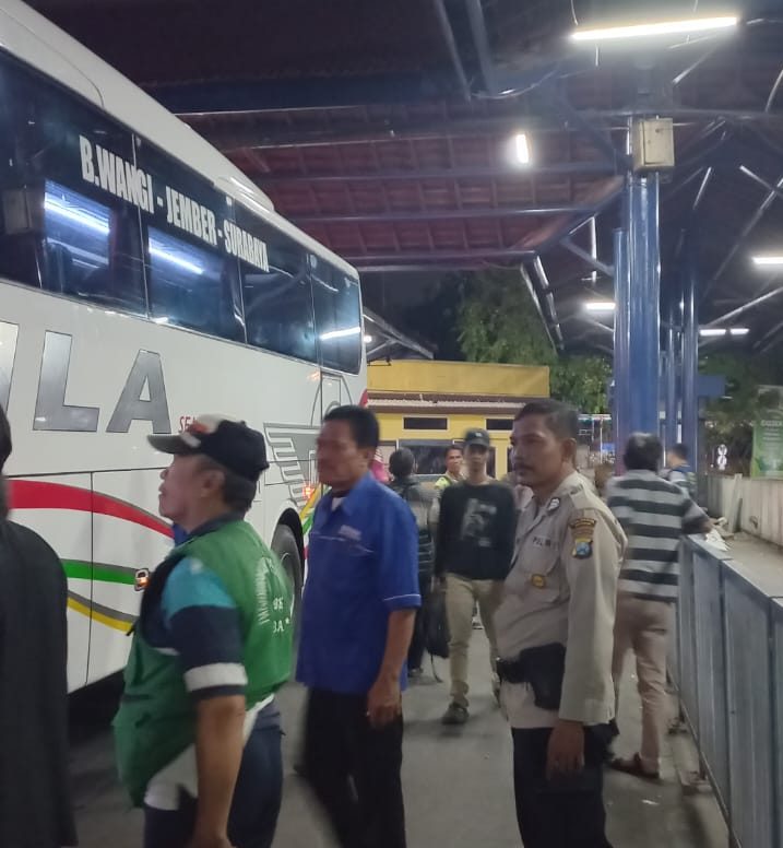 Pengamanan yang dilakukan personel Polresta Sidoarjo, seperti tampak di Terminal Bus Purabaya, Bungurasih, Waru, Minggu (1/9/2024). Personel polisi bersama stake holder terkait melakukan pemeriksaan dan patroli dialogis kepada kru bus maupun penumpang di keberangkatan bus tujuan Bali.