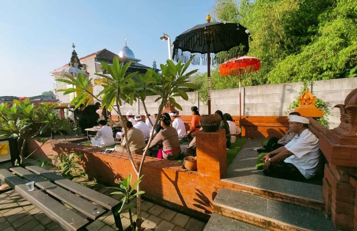 Anggota Polresta Sidoarjo, polsek jajaran beragama Hindu dan umat Hindu di sekitar Mako Polresta Sidoarjo, Rabu (2/8/2023), melaksanakan ibadah Hari Raya Galungan di Pura Kertha Bumi Bhayangkara.