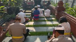 Anggota Polresta Sidoarjo, polsek jajaran beragama Hindu dan umat Hindu di sekitar Mako Polresta Sidoarjo, Sabtu (9/3/2024), melaksanakan ibadah Hari Raya Kuningan di Pura Kertha Bumi Bhayangkara.