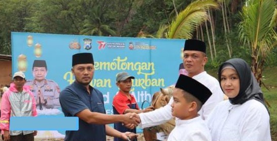 “Alhamdulillah pada Idul Adha 1444 Hijriah tahun 2023 ini kami bersama jajaran dan masyarakat bisa melaksanakan shalat id berjamaah dan menyembelih 2 ekor sapi dan kambing langsung kami bagikan kepada masyarakat,”kata, Kapolres Pacitan AKBP Wildan Alberd, Kamis (29/6/2023).