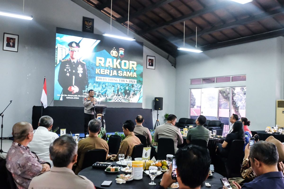 Hal ini disampaikan Kapolda Jateng dalam Rakor Kerjasama Tahun 2024 yang diselenggarakan Polda Jawa Tengah di Hallroom Borobudur International Golf & Country Club, Kota Magelang pada Selasa (11/6/2024). Kegiatan tersebut dihadiri oleh sejumlah Rektor Universitas di Jawa Tengah, serta sejumlah pimpinan dari berbagai BUMN dan Perusahaan