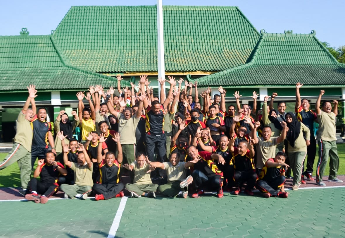 Jajaran TNI dari Kodim 0813 Bojonegoro dan SatBrimob Kompi 3 Batalyon C Polda Jatim melaksanakan olahraga bersama dalam rangka meningkatkan sinergitas serta soliditas demi tetap terjaganya stabilitas wilayah yang kondusif di Kabupaten Bojonegoro. Kegiatan dalam suasana penuh keceriaan dan kekeluargaan ini dilaksanakan di Markas Kodim setempat, Jum’at (29/7/2022).