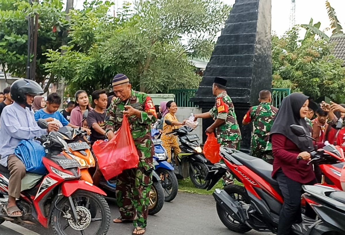 Bersama puluhan anggota Saka Wira Kartika, jajaran Bintara Pembina Desa atau Babinsa Komando Distrik Militer (Kodim) 0813 Bojonegoro Jawa Timur, serentak membagikan ribuan paket takjil gratis di 3 titik lokasi kepada masyarakat dan para pengguna jalan raya, Jumat (14/3/2025).