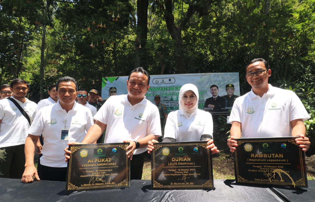 Salah satu program penanaman dilakukan Kajati Jatim Mia Amiati dengan menanam pohon dan tanaman buah di wisata Coban Rondo, Malang bersama Kadivre Perhutani Jatim Wawan Triwibowo pada Selasa (29/10).
