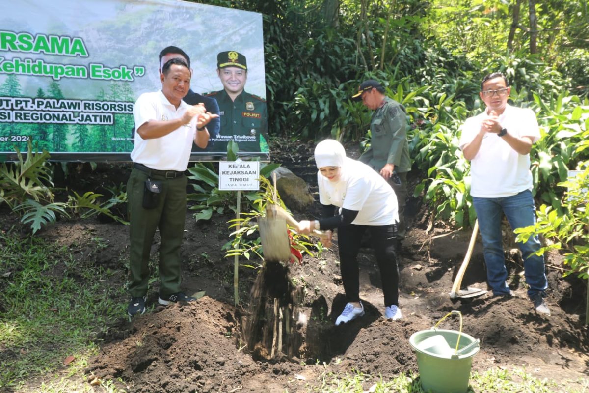 “Tujuan diselenggarkannya kegiatan penanaman pohon ini adalah sebagai bukti nyata kepedulian insan Adhyaksa sebagai aparat penegak hukum yang tidak hanya peduli terhadap unsur keadilan dalam penengakan perkara dan pelaksanaan tugas fungsi Kejaksaan lainnya,” ujar Kajati Jatim Mia Amiati.