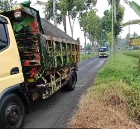 Jalan Pakis Badrang Parangharjo Songgon Hancur Akibat Truk ODOL Muatan Pasir Galian C