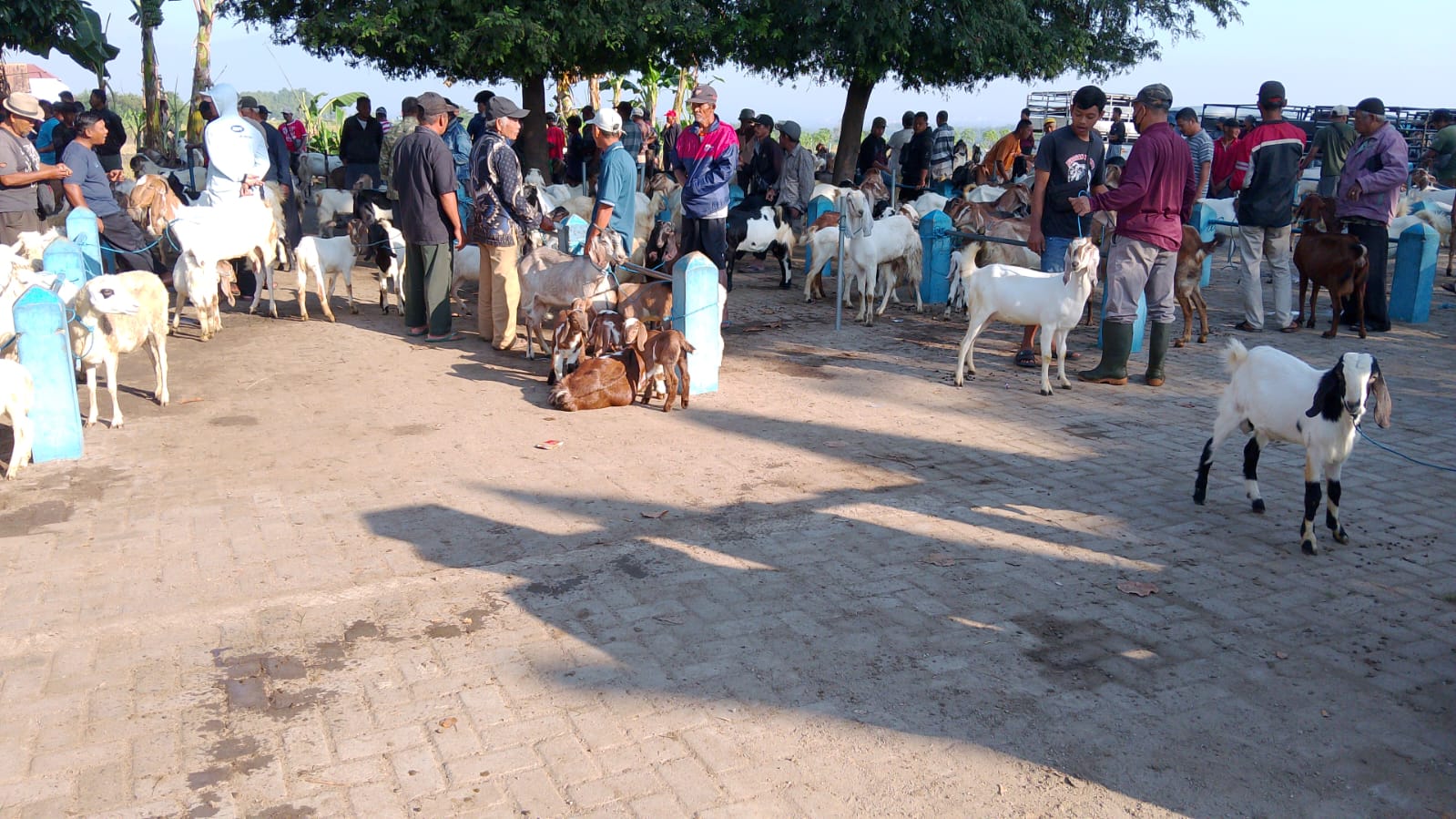 Ramainya calon pembeli berdatangan ke pasar yang berlokasi lumayan jauh dari kota Madiun ini. Ada yang baru sebatas mengecek harga, tak sedikit yang langsung bertransaksi. Tingginya minat konsumen mencari hewan kurban ini membuat harga Kambing secara otomatis mulai melonjak.