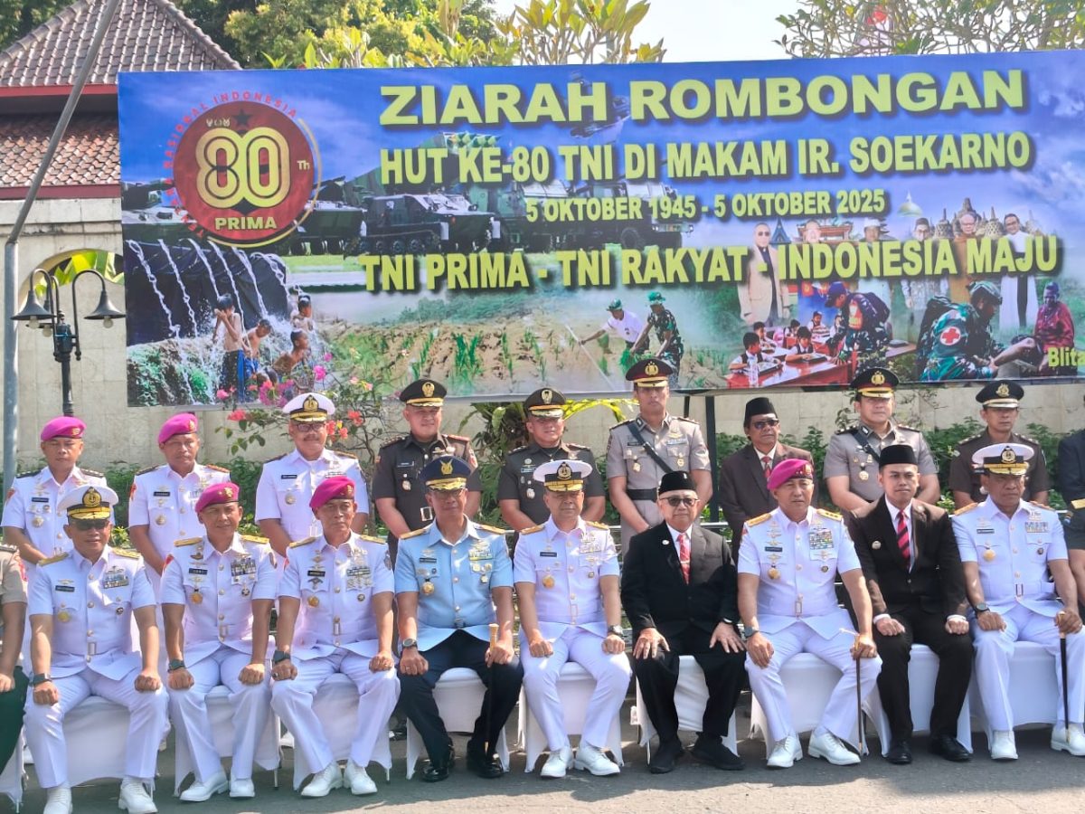 Dalam rangka menyambut Hari Ulang Tahun (HUT) ke-80 Tentara Nasional Indonesia (TNI) yang jatuh pada 5 Oktober 2025, TNI menggelar ziarah rombongan di Makam Bung Karno (MBK), Blitar, Jawa Timur, pada Minggu (28/9/2025). Kegiatan ini dipimpin langsung oleh Komandan Komando Pembinaan Doktrin, Pendidikan, dan Latihan TNI AL (Dankodiklatal), Letjen TNI Marinir Nur Alamsyah, S.E., M.M., M.Tr.(Han).