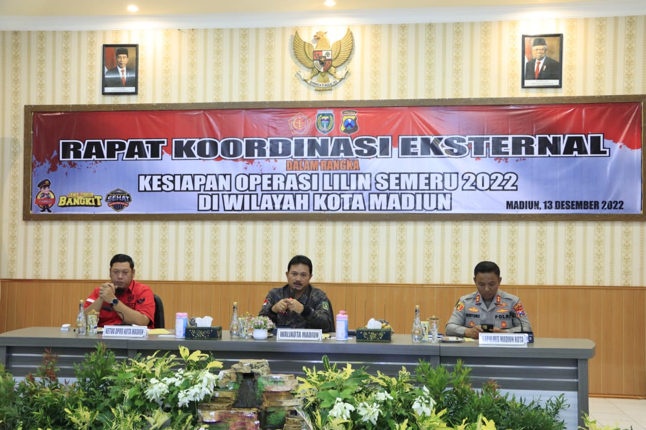 Polres Madiun Kota menggelar rapat koordinasi (rakor) bersama jajaran Forkopimda dan lintas sektoral menghadapi Operasi Lilin Semeru 2022 tentang pengamanan Natal 2022 dan tahun baru 2023.