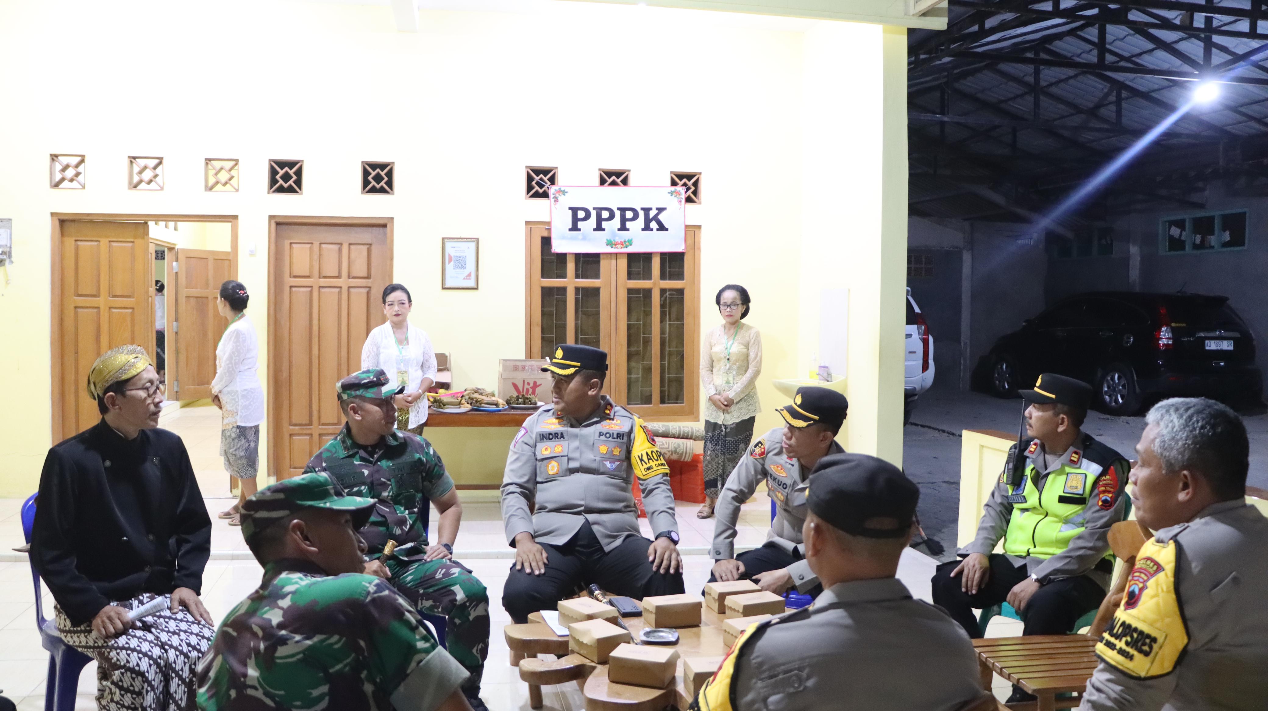 Kapolres Wonogiri, Polda Jateng AKBP Andi Muhammad Indra Waspada Amirullah, S.H., S.I.K., M.M., M.Si., bersama Dandim 0728 Wonogiri Letkol Inf Edy Ristriyono dan Wakapolres Wonogiri serta PJU Polres Wonogiri melaksanakan pengecekan pengamanan gereja di Kebupaten Wonogiri jelang Perayaan Natal 2023. Minggu malam 24/12/2023.
