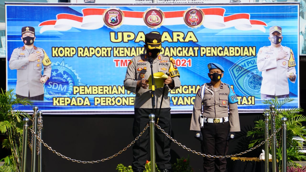Kapolresta Mojokerto mengatakan, Upacara Korps Raport Kenaikan Pangkat Pengabdian ini, bukanlah kegiatan seremonial biasa, tetapi hendaknya dilihat maknanya, karena kenaikan pangkat pengabdian merupakan penghargaan atau reward yang diberikan oleh pimpinan Polri berdasarkan Prestasi Kerja pengabdian yang terus-menerus tetapi tidak pernah melakukan pelanggaran disiplin maupun pidana selama melaksanakan tugas sebagai anggota Polri dengan melalui suatu proses yang panjang sehingga saudara yang telah ditetapkan oleh pimpinan Polri pantas dan tetap mendapatkan kenaikan pangkat pengabdian setingkat lebih tinggi