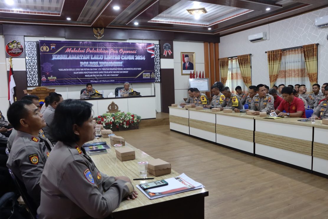 Guna meningkatkan kesadaran berlalu lintas, serta mengurangi risiko fatalitas kecelakaan di jalan. Polres Wonogiri menggelar Latihan Pra Operasi (Latpraops) Keselamatan Lalu Lintas Candi 2024 di Aula Sanika Satyawada polres Wonogiri, Kamis (29/2/2024)