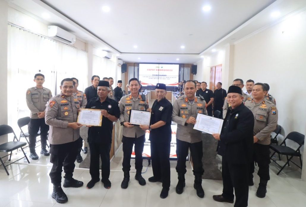 Menjelang pelaksanaan tradisi Suroan dan pengesahan calon warga Persaudaraan Setia Hati Terate (PSHT) Pusat Madiun, Polres Bojonegoro menggelar rapat koordinasi (rakor) lintas wilayah dengan Polres Tuban dan Polres Lamongan. Rakor yang dilangsungkan di ruang rapat lantai 2 Mapolres Bojonegoro, Rabu (11/6/2025).