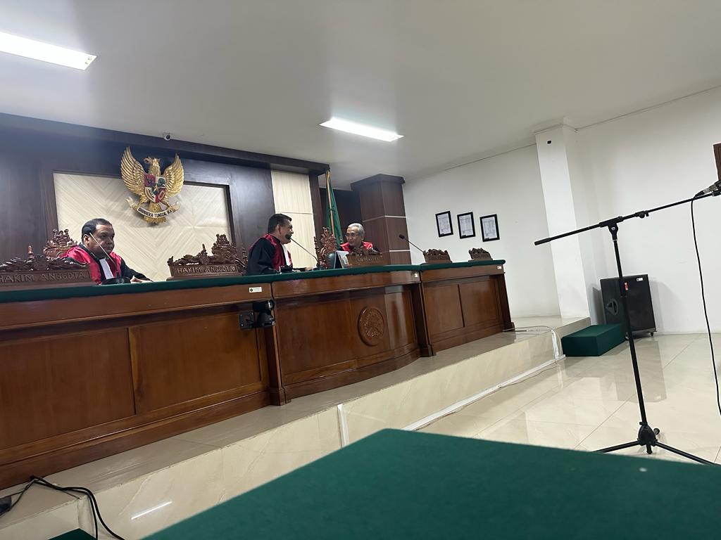 Hendri Tobing, S.H.,M.H selaku Ketua Majelis Hakim yang memeriksa perkara para Terdakwa telah membacakan penolakan permohonan penangguhan penahanan yang dimohonkan oleh Terdakwa Ir. H. Haris Yasin Limpo, MM., dan Terdakwa Irawan Abadi, SS., M.Si