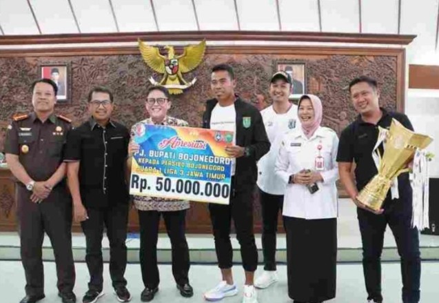 Adriyanto menekankan, Persibo adalah miliknya masyarakat Bojonegoro, milik kita semua, sehingga masyarakat Bojonegoro harus mendukung Persibo. Sebagai tanda kebanggan atas prestasi tersebut, Pj Bupati Adriyanto pun memberikan apresiasi senilai 50 juta rupiah kepada seluruh tim Persibo, semoga ini bisa menjadi motivasi untuk terus bisa semangat menjadi juara, terus naik kelas menjadi juara Nasional. Selain Adriyanto, tanda penghargaan juga diberikan oleh Didik Farhan senilai 50 juta rupiah kepada tim Persibo Bojonegoro.(red/kmf)