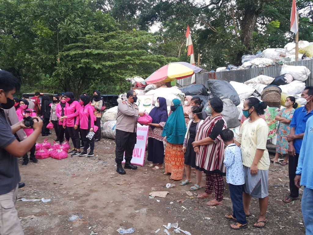 Polres Wonogiri bersama Bhayangkari dan Yayasan Kemala Bhayangkari menggelar bakti sosial, Jum’at (22/4/2022). Kegiatan tersebut menyasar ke pemukiman bantaran rel kereta api di lingkungan Salak, Kelurahan Giripurwo, Kecamatan/Kabupaten Wonogiri.