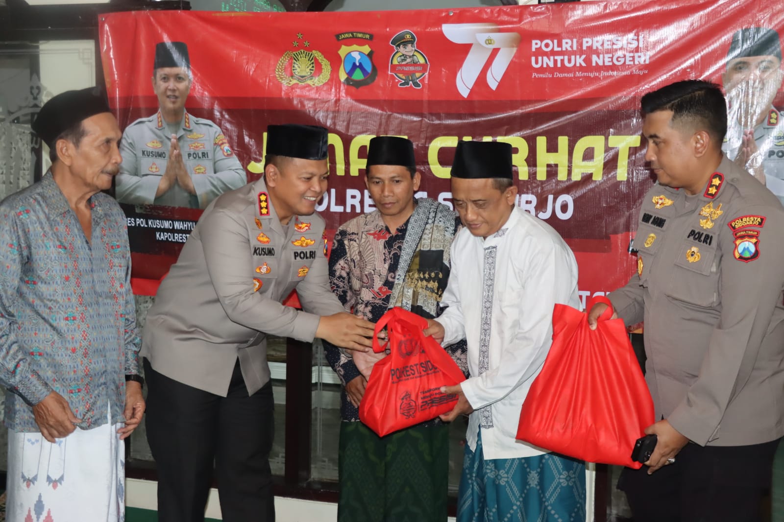 Kapolresta Sidoarjo Komisaris Besar Polisi Kusumo Wahyu Bintoro melaksanakan kegiatan Jumat Curhat di Desa Kedensari, Tanggulangin, Sidoarjo, Jumat (4/8/2023).