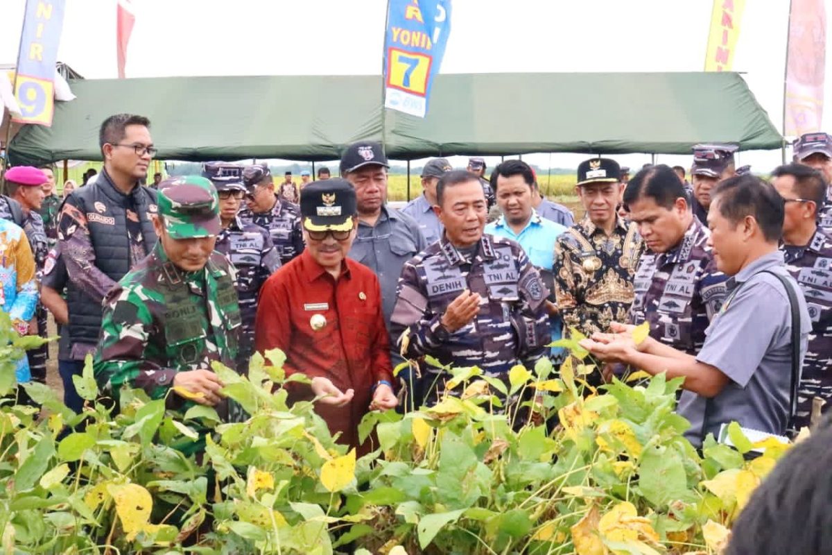 Bupati Lampung Utara, Dr. Ir. H. Hamartoni Ahadis, M.Si., bersama Wakil Bupati Romli, S.Kom., S.H., M.H., mendampingi Kepala Staf Angkatan Laut (Kasal) Laksamana TNI Dr. Muhammad Ali dalam peninjauan persiapan kegiatan Panen Ketahanan Pangan TNI Angkatan Laut Tahun Anggaran 2025 serta rencana kunjungan Presiden Republik Indonesia, Bapak Prabowo Subianto, di Markas Komando Pangkalan TNI AL (Kimal) Lampung, Kamis (23/10/2025).