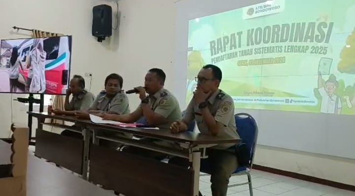 Untuk mempercepat pendaftaran tanah di seluruh wilayah Indonesia, pemerintah Kabupaten Bondowoso dalam hal ini melalui Badan Pertanahan ATR/BPN Bondowoso mengadakan Rapat Koordinasi Persiapan Pendaftaran Tanah Sistematis Lengkap ( PTSL ) 2025,Senin ( 2/12/2024 ).