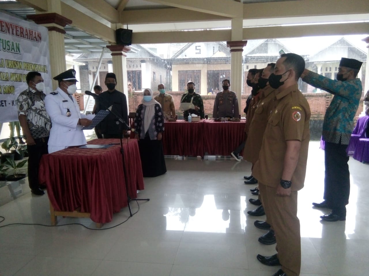 Kepala Desa Cempoko Limo Mahfud Sulaiman, S.Pd, Melantik dan mengambil Sumpah Jabat Perangkat Desa Cempoko Limo, Jum’at (18/ 2/ 2022, bertempat di Pendopo Balai Desa Cempoko Limo Kecamatan Pacet Kabupaten Mojokerto diiringi cuaca hujan cukup deras.
