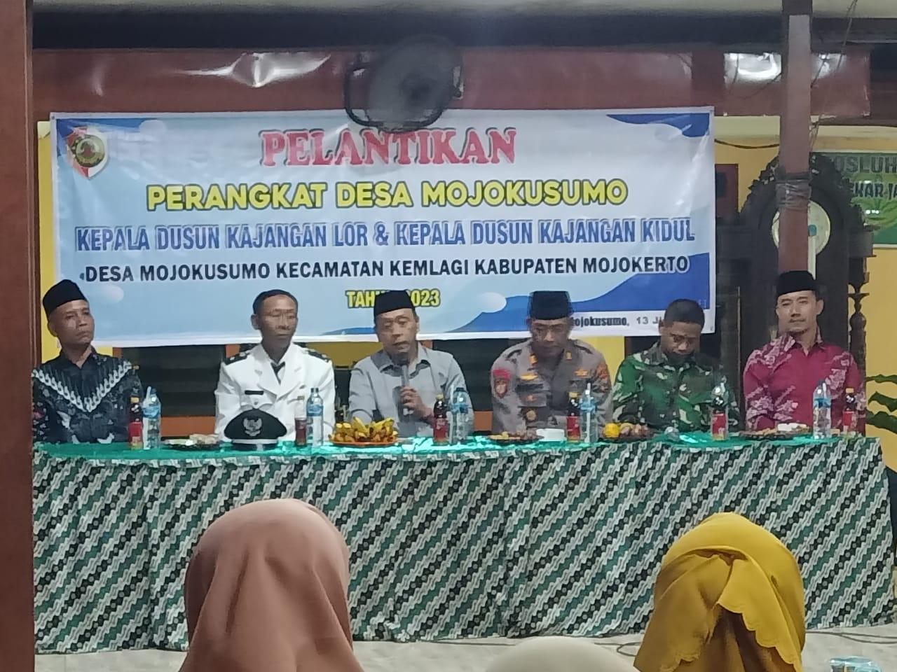 Adapun para Perangkat Desa Mojokusumo yang dilantik oleh Kades Mojokusumo di Pendopo Balai Desa Mojokusumo yakni, Arif Wiyanto sebagai Kepala Dusun Kajangan lor dan Krida Fatkhur Dianto sebagai Kepala Dusun Kajangan Kidul.