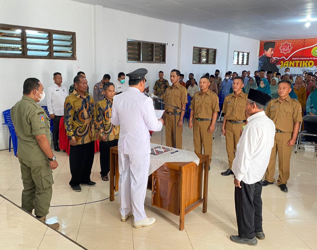 Supoyo, SH., kepala desa Petak kecamatan Pacet kabupaten Mojokerto melantik dan mengambil sumpah jabatan empat perangkat Desa Petak, yakni : Dimas Bagus Setyoko sebagai sekretaris Desa Petak, Alung Yus Prianto sebagai kasi pemerintahan Desa Petak, Vive Surya Pratama sebagai kaur perencanaan Desa Petak dan Yogi Suprayitno sebagai kepala dusun Kucur, bertempat di Gedung PKK Desa Petak Rabu,( 06/ 07/2022 ) .