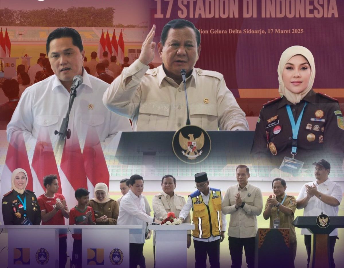 Dengan mengucap Bismillahirrahmanirrahim, Presiden Prabowo Subianto meresmikan teori dan pembangunan 17 (tujuh belas) stadion di Indonesia yang telah selesai dilaksanakan dengan disaksikan oleh Menteri PUPR, Menteri Dalam Negeri, Menteri Olahraga, Menteri BUMN sekaligus sebagai Ketua Umum PSSI, para atlet dan tokoh legendaris sepak bola Indonesia.