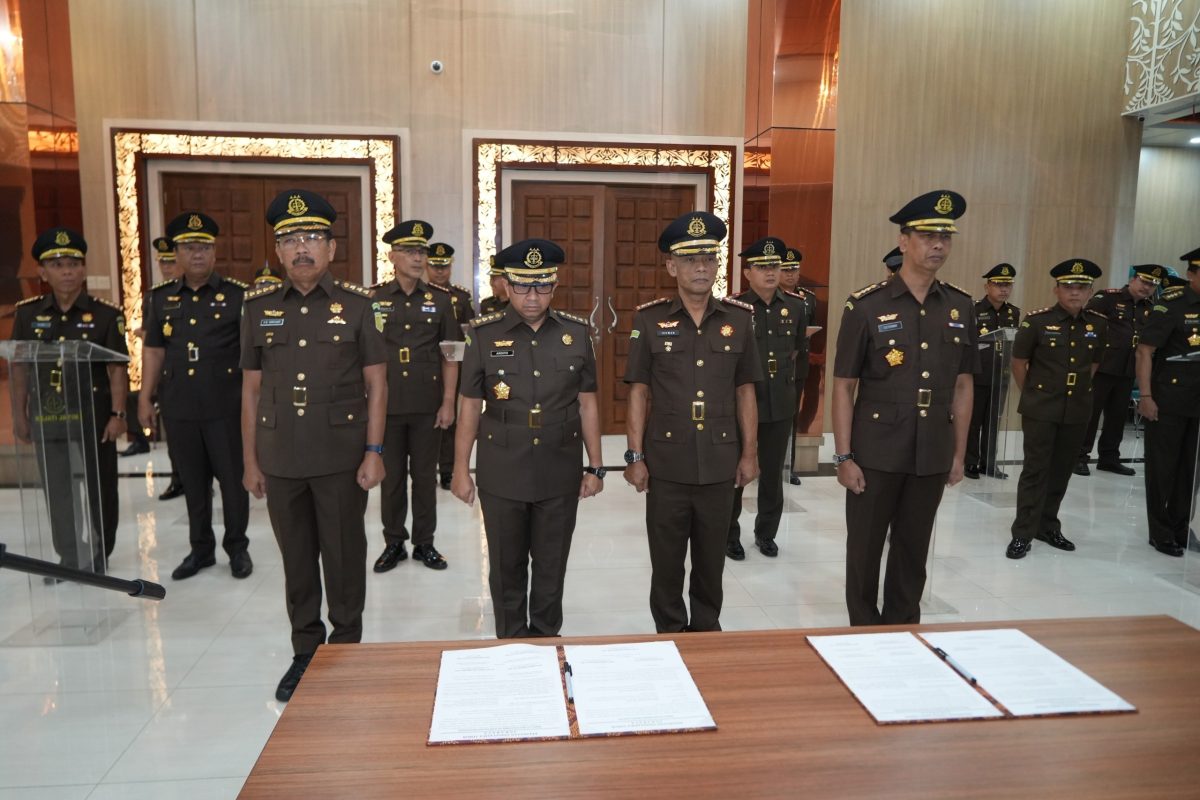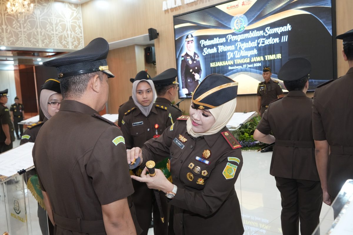 Kepala Kejaksaan Tinggi Jawa Timur (Kajati Jatim), Dr. Mia Amiati, S.H , M.H., CMA., pimpin upacara pelantikan dan pengambilan sumpah jabatan dan serahterima jabatan (Sertijab) jajaran Kejati Jatim dan beberapa Kepala Kejaksaan Negeri (Kajari). Kamis (27/6).