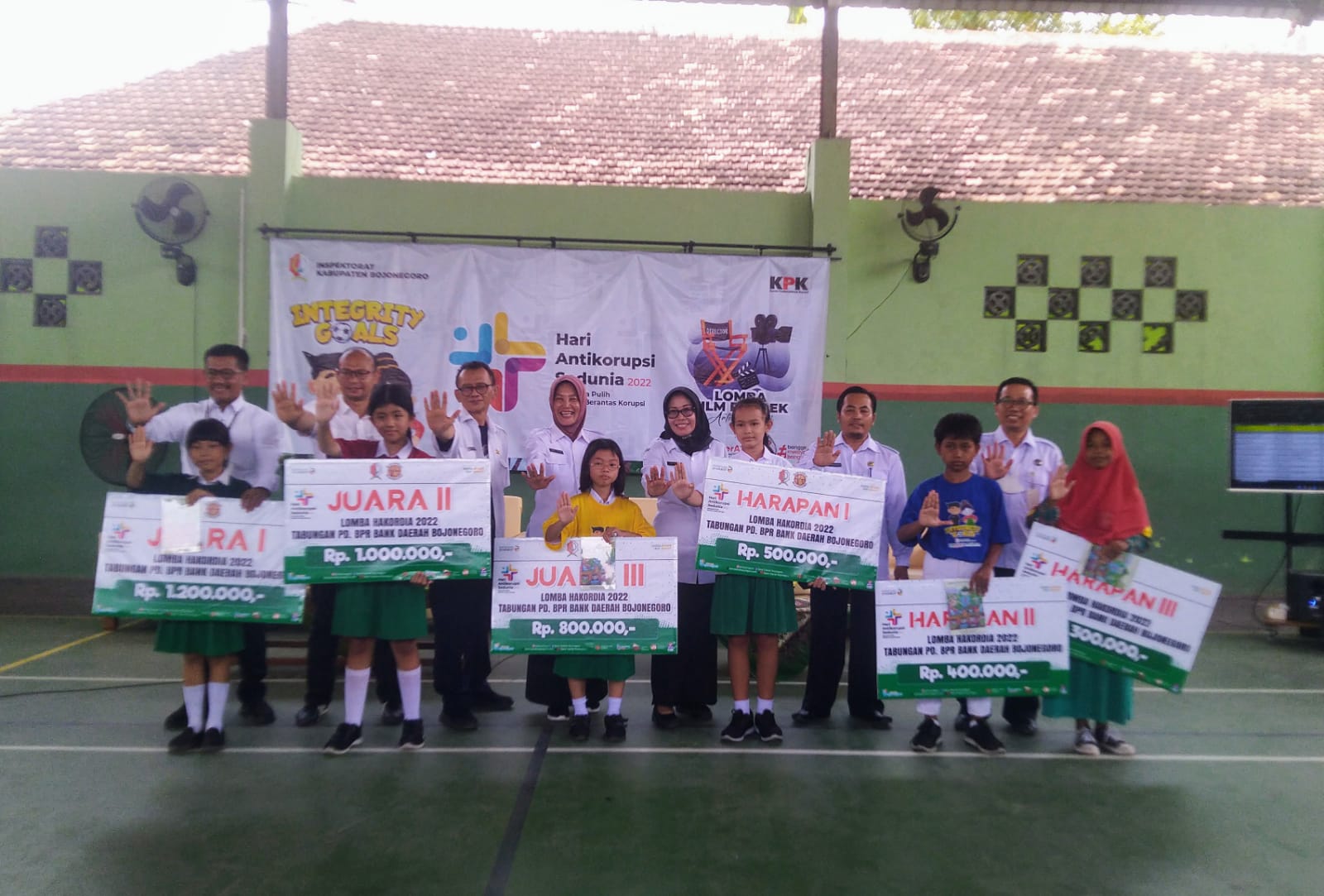 Pemkab Bojonegoro melalui Inspektorat menggelar acara puncak peringatan Hari Antikorupsi Sedunia (Hakordia) dengan cara yang unik. Kegiatan ini diwarnai lomba game pendidikan antikorupsi melalui game Integrity Goals bersama adik-adik Sekolah Dasar (SD), Selasa (14/12/3022). Acara edukatif ini dilaksanakan di aula SMPN 5 Kecamatan Bojonegoro.