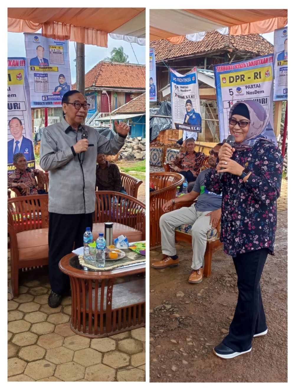 Calon anggota legislatif (Caleg) DPR RI dari Partai NasDem nomor urut 1, Drs. Hi. Tamanuri, MM., bersama Caleg DPRD Provinsi Lampung Partai NasDem nomor urut 2, Mardiana, ST., MT., melangsungkan kampanye tatap muka, pada Sabtu, 6 Januari 2024, di Desa Bonglai Tengah, Kecamatan Hulu Sungkai, Kabupaten Lampung Utara.