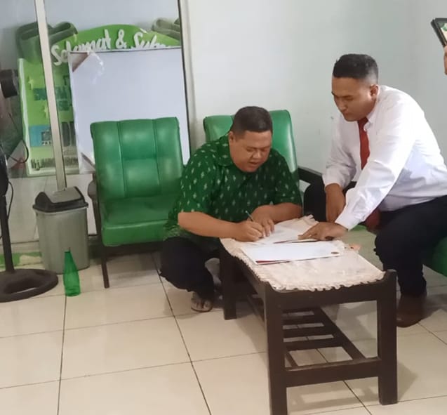 Advokat Muda dari Surabaya M.Gaty, SH, C. TA, MH, yang akrab disapa Sakty ini saat menyerahkan Berkas Surat Somasi kepada Ketua DPC PPP Kabupaten Mojokerto