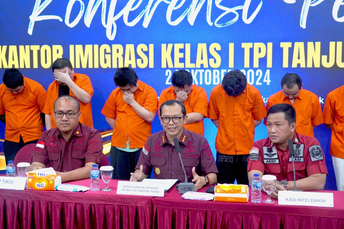 10 Orang Warga Negara asing WNA terlibat Scamming (penipuan online), menurut I. Gusti B. Ibrahiem kepala Kantor Imigrasi Kelas I TPI Tanjung Perak , saat jumpa pers pada kamis 24 Oktober menyampaikan perkembangan penanganan kasus 10 WNA Pelaku Sindikat Scamming atau Penipuan Online yang diamankan oleh Pihak Polrestabes Surabaya di kawasan perumahan elit daerah Surabaya Barat dan telah diserah terimakan kepada Kantor Imigrasi Kelas I TPI Tanjung Perak pada hari Jumat tanggal 20 September 2024.