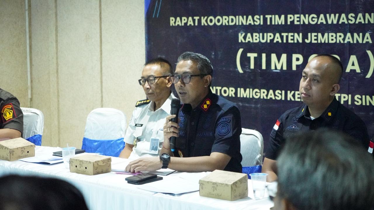 Dalam rangka upaya memperketat pengawasan terhadap aktivitas Warga Negara Asing (WNA), Kantor Imigrasi Kelas II TPI Singaraja sukses menyelenggarakan Rapat Tim Pengawasan Orang Asing (Timpora) di Negara Hotel, Kabupaten Jembrana, pada Selasa (21/4). Pertemuan strategis ini dihadiri langsung oleh Kepala Kantor Imigrasi Singaraja, Anak Agung Gde Kusuma Putra, jajaran pimpinan Kantor Wilayah Direktorat Jenderal Imigrasi Bali, serta perwakilan dari 15 instansi di lingkungan pemerintah daerah setempat.