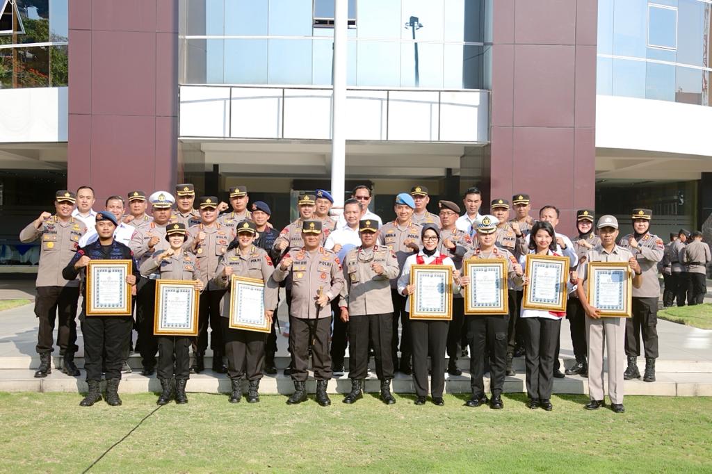 Kapolda Jateng Irjen Pol. Drs. Ahmad Luthfi, S.St.Mk., SH., memberikan penghargaan kepada personil Polda Jawa Tengah yang berprestasi, saat apel pagi di halaman Mapolda Jateng, Senin, 25 September 2023.