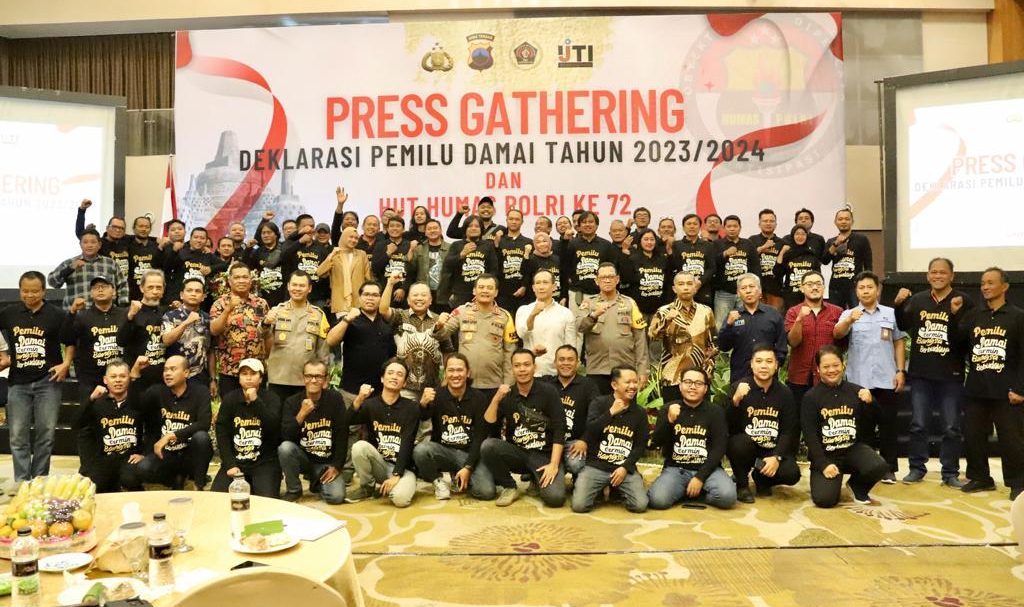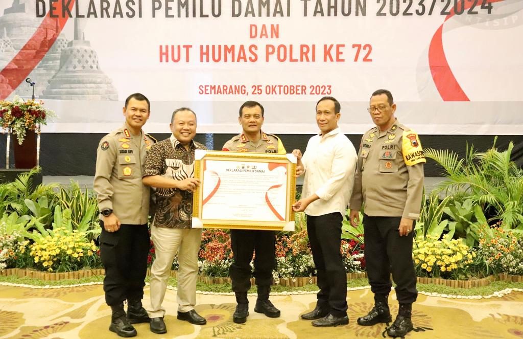 Kapolda Jateng selaku Kaopsda Ops Mantap Brata 2023 mengajak insan Pers Jawa Tengah untuk ikut dalam menjaga kondusifitas selama Pemilu 2024 dengan menggelar Deklarasi pemilu Damai 2023/2024, Rabu (25/10/2023).