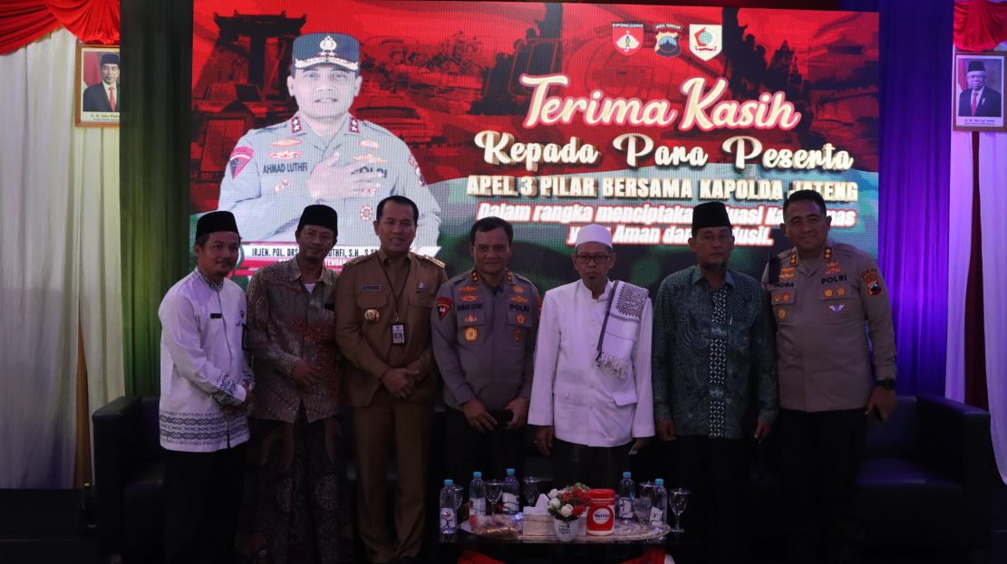 Kapolda Jateng Irjen Pol Drs. Ahmad Luthfi, S.H., S.St.M.K., hadiri Apel 3 (tiga) Pilar dengan Tokoh Agama, Tokoh Masyarakat dan Tiga Pilar se-Kabupaten Wonogiri dalam rangka menciptakan situasi Kamtibmas yang aman dan kondusif bertempat di Hotel Merista Raya, Jl. Purwantoro – Ponorogo KM. 2, Selasa pagi (28/5/24)