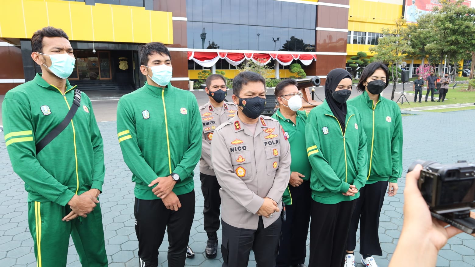 Kapolda Jawa Timur Irjen Pol Nico Afinta yang sekaligus sebagai Ketua Umum Pengurus Provinsi Persatuan Bola Voli Seluruh Indonesia (PBVSI) Jatim didampingi Wakapolda serta pejabat utama Polda Jatim secara langsung melepas kontingen tim bola voli Jatim yang akan berlaga di Pekan Olahraga Nasional (PON) XX/2021 Papua, pada Rabu (22/9/2021), di gedung Rupatama Polda Jatim.