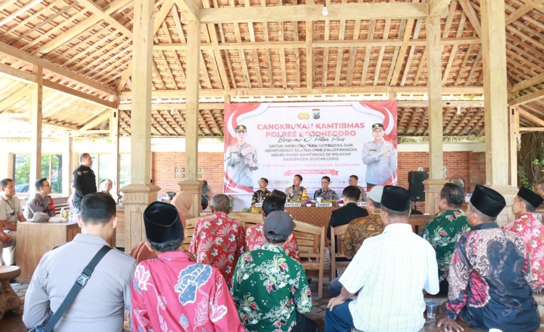 Dalam rangka memelihara keamanan ketertiban masyarakat (Harkamtibmas) dan menyerap aspirasi masyarakat, Polres Bojonegoro menggelar Cangkrukan Kamtibmas bertempat di Balai Desa Sonorejo Kecamatan Padangan Kabupaten Bojonegoro, Kamis (16/5/2024).