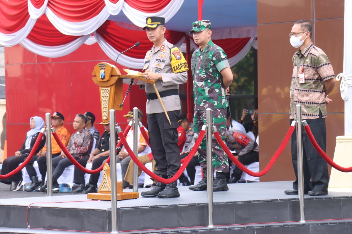 Kapolres Bpjonegoro, AKBP Mario Prahatinto, S.H., S.I.K., M.Si., memimpin apel Gelar Pasukan Operasi Terpusat Lilin Semeru 2024 di lapangan Mapolres Bojonegoro, Jumat (20/12/24).