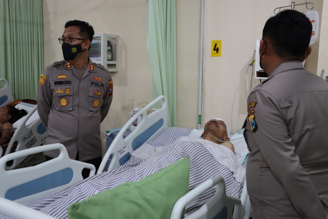 Sebagai wujud perhatian dan kepedulian seorang atasan kepada bawahan yang mengalami musibah kecelakaan, Kapolres Bondowoso AKBP Wimboko SIK, sambangi Rumah Sakit Bhayangkara untuk menjenguk Aiptu Puput Yuwono Putra yang menjalani operasi setelah mengalami musibah kecelakaan. Senin, (1/8/2022)
