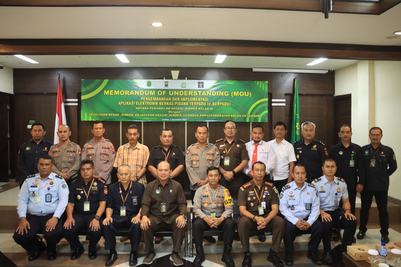Sebelum MOU disepakati bersama oleh instansi di Kabupaten Jember ini, dimana pada tanggal 21 Juni 2022 yang lalu Mahkamah Agung RI bersama dengan 10 (sepuluh) Lembaga Penegak Hukum dan Kementerian Lembaga terkait lainnya juga telah menandatangani Nota Kesepahaman dan Pedoman Kerja Bersama tentang Pengembangan dan Implementasi Sistem Peradilan Pidana Terpadu berbasis Elektronik (SPPT-TI).