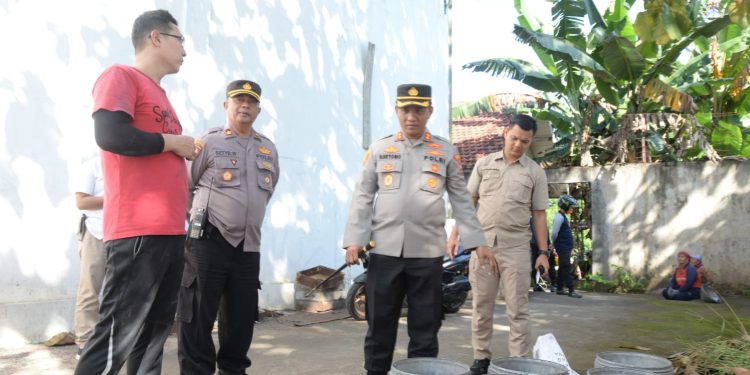 Kapolres Madiun Kota AKBP Suryono, SH., SIK., MH., bersama Kasat Reskrim dan Kapolsek Taman mendatangi TKP terjadinya Kebakaran di Gudang sekaligus tempat produksi kembang api di Jalan Soekarno-Hatta Kelurahan Demangan, Kecamatan Taman, Kota Madiun, Selasa, (28/6/2022) siang