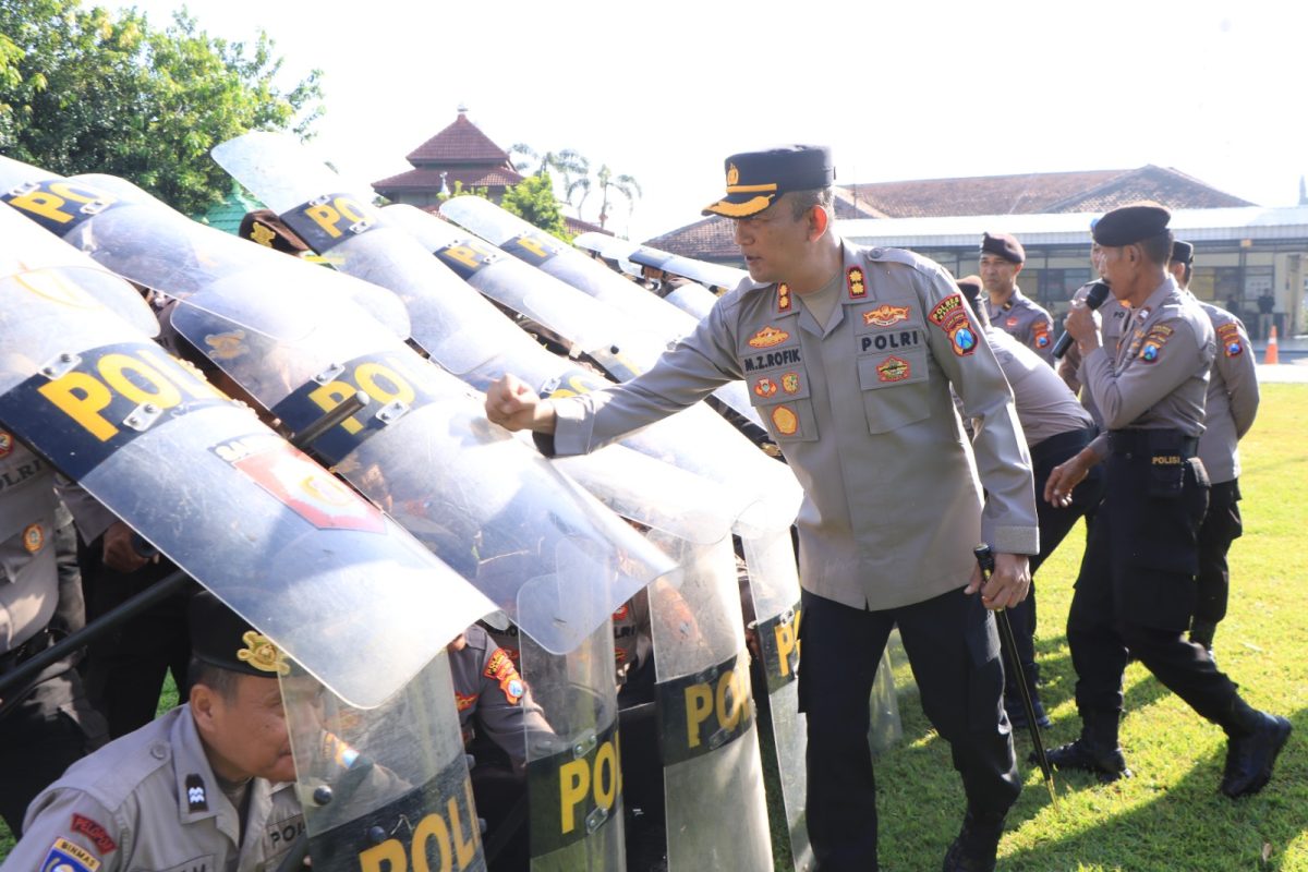 Dalam rangka memastikan kesiapan personel menghadapi pengamanan peringatan Hari Buruh Internasional (Mayday) tahun 2025, Polres Madiun menggelar latihan pengendalian massa (Dalmas) yang dipimpin langsung oleh Kapolres Madiun, AKBP Mohammad Zainur Rofik, S.I.K., Rabu (30/4/2025).