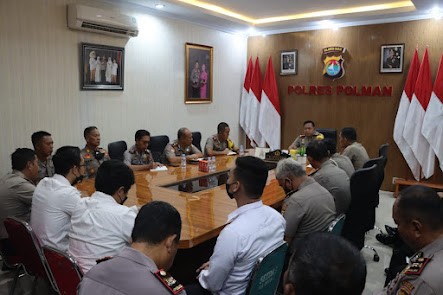 Kapolres Polman AKBP. Agung Budi Leksono,SH., S.IK., M.Pd., memimpin pelaksanaan Analisa dan Evaluasi (Anev) Mingguan pada bulan AGUSTUS 2022 yang digelar diruang rapat kapolres senin, (22/08/2022).