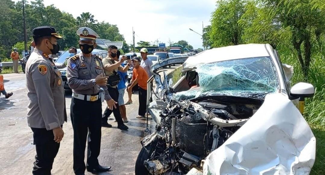 Kecelakaan lalulintas yang terjadi di jalur tengkorak pantura Probolinggo, Senin 21 Maret 2020, mengakibatkan sopir Avanza terjepit dan tewas.
