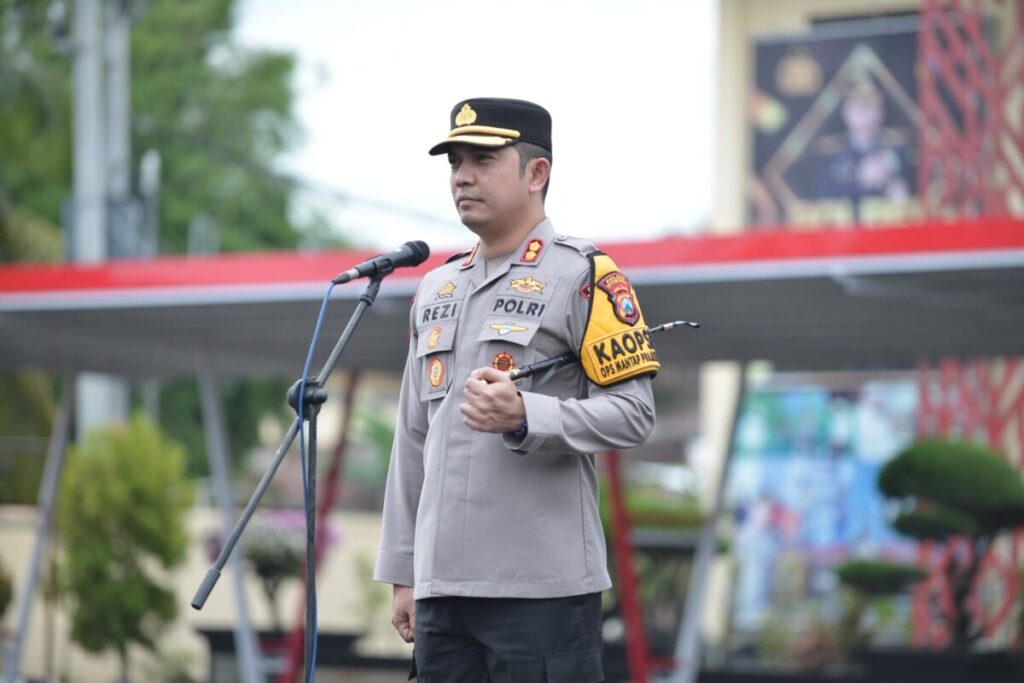 Kapolres Situbondo AKBP Rezi Dharmawan, S.I.K., M.I.K. memberikan arahan kepada seluruh personel Polres Situbondo saat apel pagi jam pimpinan. Acara digelar di lapangan Apel Mapolres Situbondo, Senin, (3/2/2025), pagi.