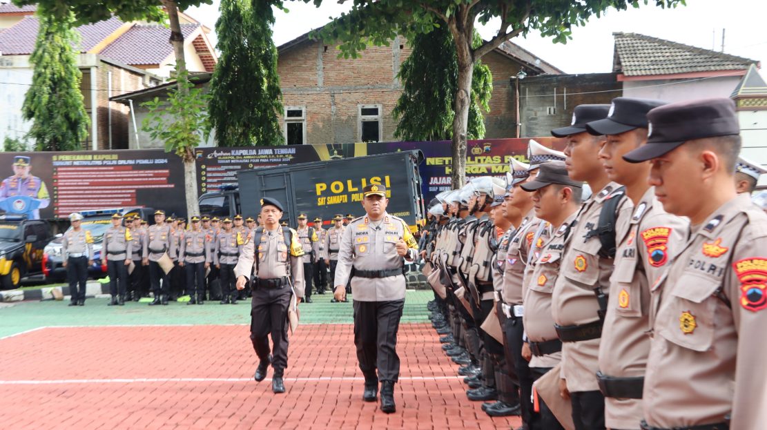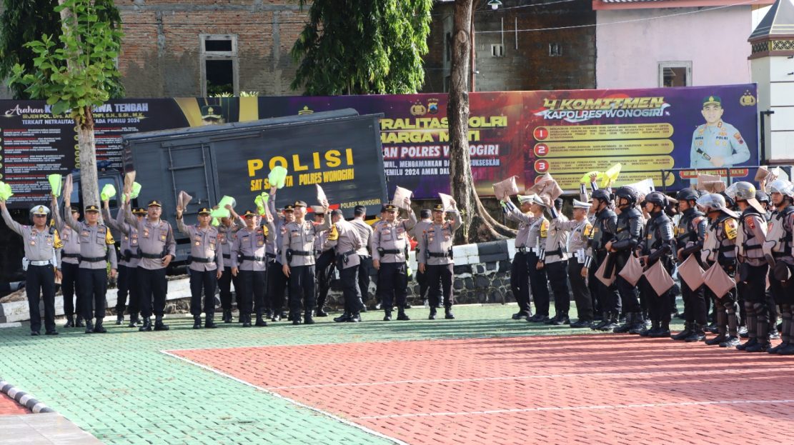 Polres Wonogiri gelar apel kesiapan pengamanan kampanye terbuka pemilu 2024. Apel dilaksanakan di halaman Mapolres Wonogiri di ikuti seluruh personil mapolres Wonogiri. Sabtu (20/1/2024)