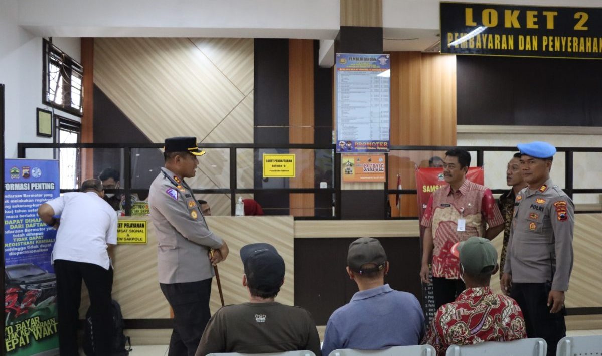 Dalam kesempatan tersebut, AKBP Indra melihat secara langsung bagaimana petugas melayani masyarakat mulai dari datang sampai selesai. Pihaknya juga berbincang dengan sejumlah petugas terkait dengan kendala yang ditemui.